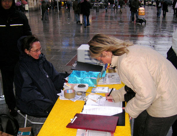 当日的天气恶劣,下着雨,狂风大作,但声援退党的人不畏狂风,以坚强的毅力呼唤人们的正义良知。一位德国妇女被感动,特意送来了热茶。