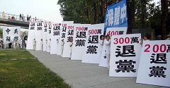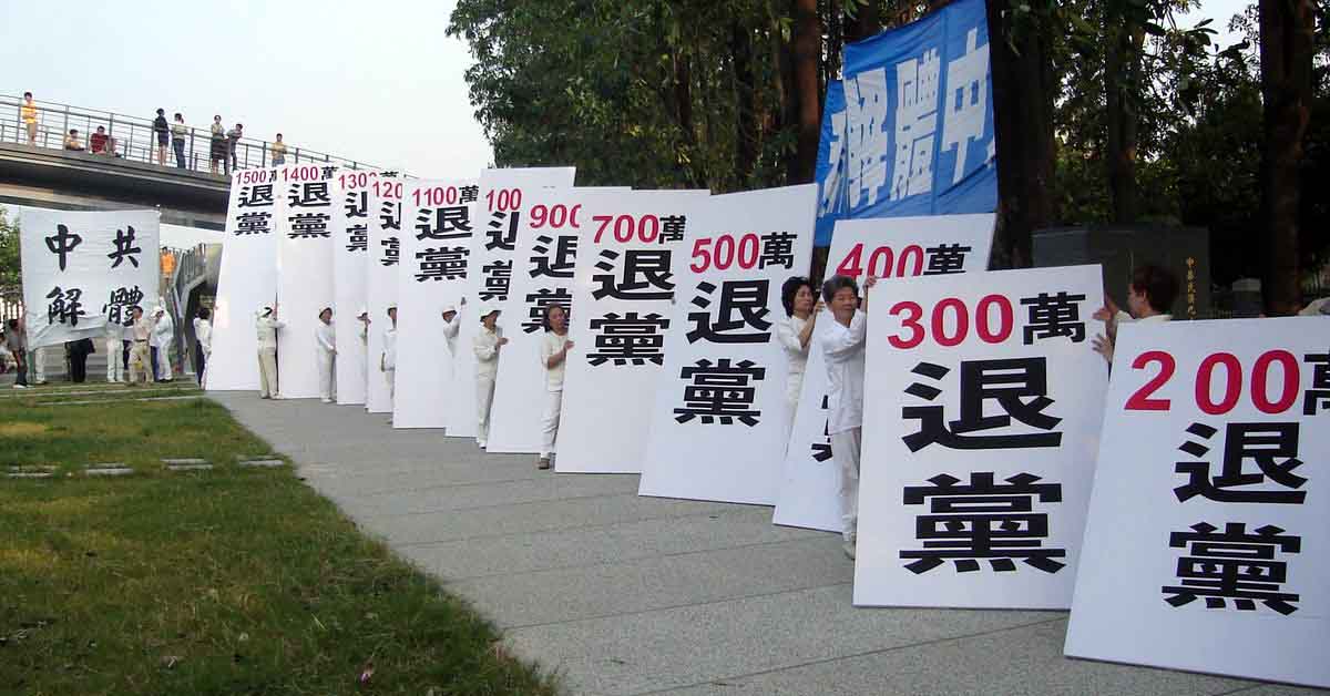 台湾民主人权大联盟发言人陈昌辉表示,退党解体中共是时代趋势;全球告别中共大联盟代表刘惠娟指出,中国预言“梅花诗”、“烧饼歌”与“推背图”都预言了今天中共的灭亡。声援活动在行动剧“九评推倒一千五百万退党骨牌”的高潮中结束。