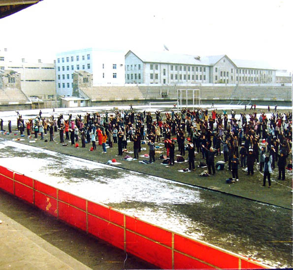 历史照片:九九年七二零前牡丹江大法弟子集体洪法炼功