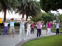 慈济公园炼功点为了方便不能早起的民众,也成立了每周一、四、六、日的晚上炼功时段。欢迎乡亲、朋友们和他们一起沉浸在法轮大法的呵护中,一起感受学炼法轮大法的殊胜。