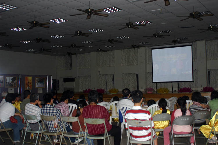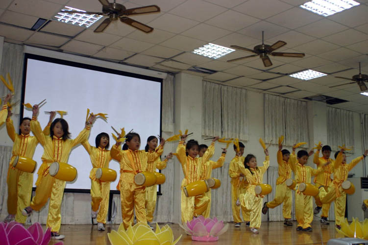 ![]() 明慧学校小朋友的腰鼓表演 | ![]() “震撼”电影的试映会每天都吸引许多有缘人来观赏 |
