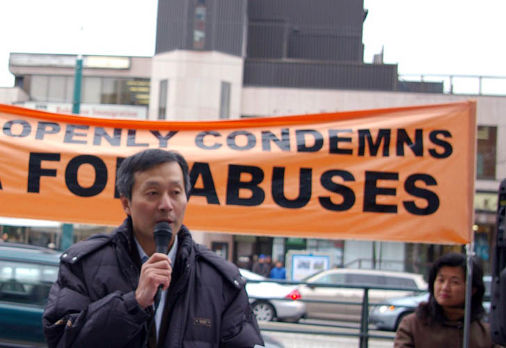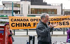 ![]() 加拿大法轮大法学会发言人张照进在集会上发言 |