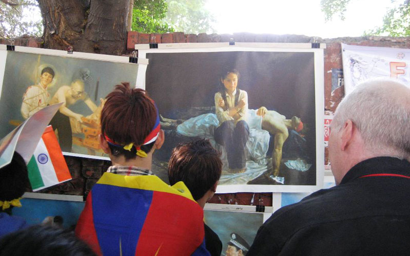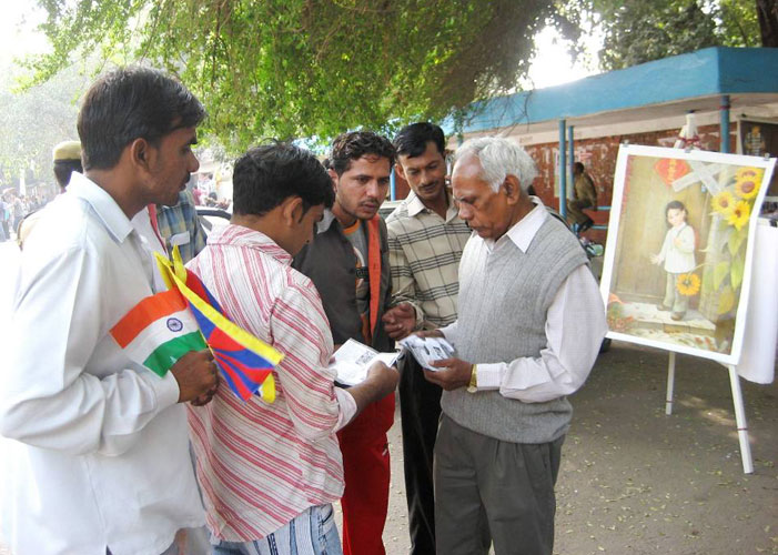 由于西藏人士都受过中共的迫害,因此当他们听了法轮功学员被中共迫害长达七年的情况都十分了解和明白。大家纷纷向学员询问拿取真相资料。