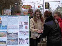 【明慧网二零零六年十一月二十九日】二零零六年十一月二十六日,乌克兰法轮功学员在多涅茨克(Donetsk)市举行活动,抗议中共对法轮功学员的人权迫害,同时,向乌克兰人民讲述在中国发生的对法轮功学员惨无人道的迫害,希望全世界善良的世人都能够觉醒,共同反对这场浩劫,使中国的人权状况尽快得以改善。