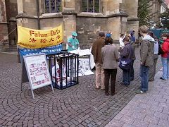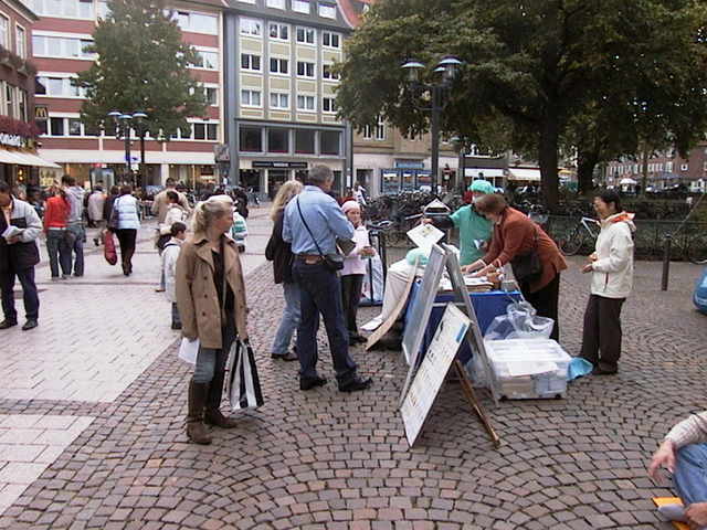 以上的故事发生在二零零六年十月二十一日星期六,明斯特市长长的步行街上。有如此多的行人非常想了解在中国的劳教所、监狱、集中营和医院所发生的事情,使得办信息日的法轮功学员非常的忙碌,感觉这一天过的飞快。