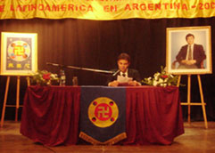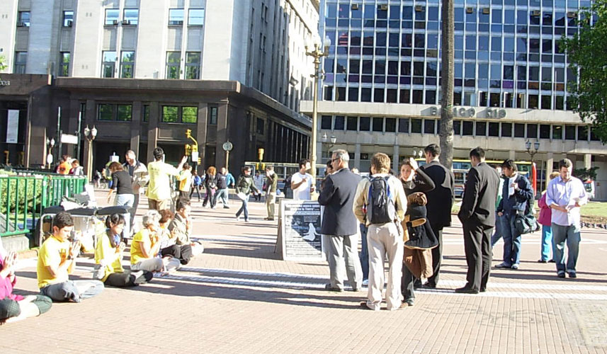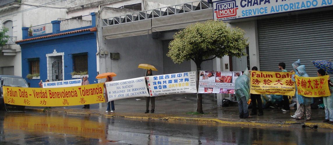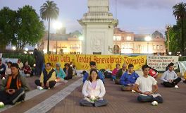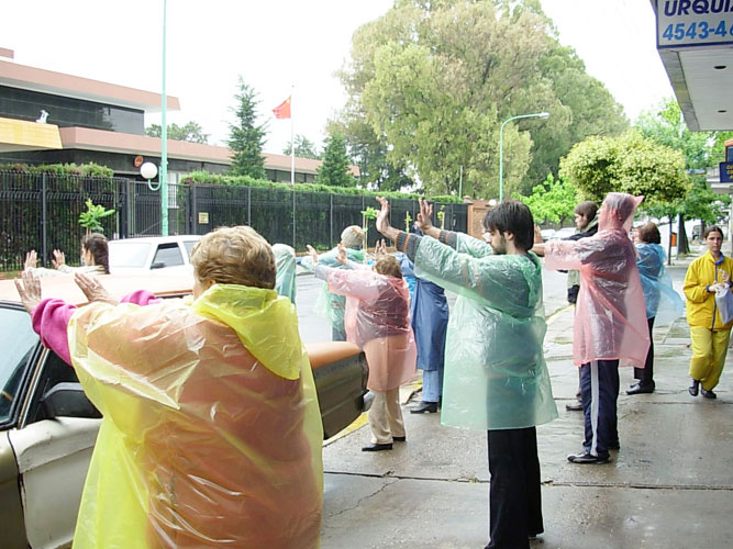 下午在总统府前揭露中共活摘器官的模拟演示及烛光守夜活动也没有被天气干扰。所预告的雨由温暖的阳光代替了。法会后的星期日,在中国城讲真相的活动也是一早大雨。可是学员早上在公园炼功、发正念时,雨突然停了,并且出来了太阳。因为天气的转变,到中国城买东西的各地华人特别多,很多人看到法轮功学员炼功都特别的停下观看。法轮功自一九九九年七月开始在中国被迫害,很多人都没看过法轮功的功法。阿根廷法轮功学员很难过的表示,他们为那么多不能修炼这么好的大法的中国人感到悲哀,也为那些到了外国还怕中共、不敢炼功的中国人感到可惜。这证明了中共的疯狂恐怖的程度。