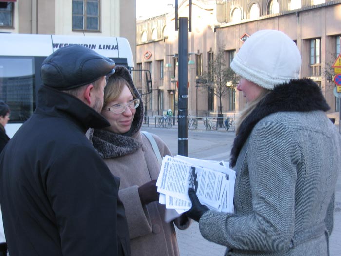一位芬兰女士对义工说,她在芬兰看到许多中国人,她认为:是上帝让他们听你们讲真相来的。