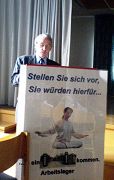 Robert-Schumann高中组织了本校和姐妹学校Frauenhof高中的学生听人权报告。卡姆市的Josef天主教会提供教堂楼的大厅,放映揭露中共对法轮功非人性迫害的电影。在电影展、人权报告会上知道了真相的男女老少都纷纷签名,要求制止中共滔天的罪恶!其中一位流亡德国,生活在卡姆市近十年的越南教授,对法轮功遭受迫害心痛至极,因为他在越南曾经饱受共产党的折磨,当年的经历刻骨铭心。老教授找到法轮功学员,感慨万分。他说,他已经向越南在海外的杂志投稿,揭露中共迫害法轮功。他还告诉他在美国的老同行,让他们也要帮助法轮功,制止迫害。