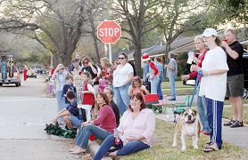 这天傍晚五时,天空仍然明亮,居民们纷纷从屋里搬出椅子,在自家门口观看,全家乐在其中。游行队伍中有邻里的大公司,如家用商店(Home Dept)等,有学生乐队,还有历史悠久的汽车,以及其它特色的汽车,社区的游行同样丰富多彩。