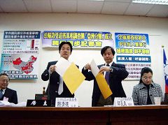 亚洲分团团长赖清德、副团长邱晃泉分别在给中共官员的公开信上签名,并将信装入信封,当天将该信件挂号寄出