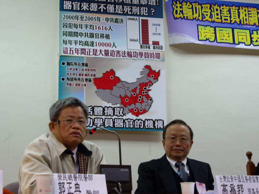 同样是医界代表的荣总医师郭正典尽管一直声称不敢相信有这样恶毒的事情,但是却沉痛的批判,中共比纳粹更可怕,纳粹是对外族(犹太),中共却是对自己的人民下手。他认为器官移植在医学上是非常重要的发展,也是人性光辉的展现,竟然被中共误用到这种地步,不应只是呼吁,他建议要采取更强而有力的行动,应该对中国全面的经济制裁,因此,对目前台湾开放投资中国上限的政策他也相当不以为然。