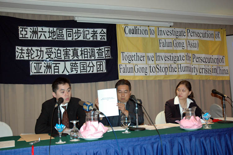 马来西亚的亚洲分团记者会于早上十时在吉隆坡联邦酒店会议室举行。马来西亚副团长云大舜律师和另一名团员陈美珊律师出席了记者会。云大舜律师在记者会上呼吁中共能够正视来自世界的要求,允许国际社会进入中国调查法轮功受迫害的人权课题。