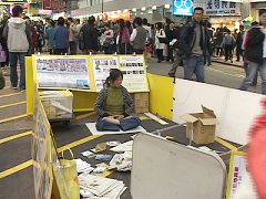 ![]() 十二月十九日,凶徒袭击旺角退党点,打翻摆放《九评共产党》小册子及光碟的台,资料散落满地。 |