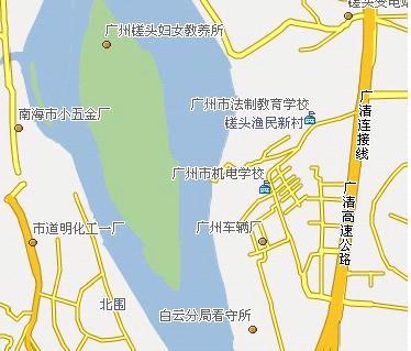 自99年7.20以来,广州地区邪恶黑窝较为集中的地方之一,即广州槎头劳教所,以及在该岛附近的黑窝:广州市少教所、广州市戒毒劳教所、广州市潭岗劳教所,广州市法制教育学校,由局部到整体依次见下图: