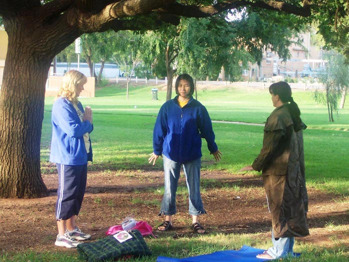 在一大早的上班行人中,许多人鸣笛和竖起大拇指明确表达对法轮功学员行动的支持。尽管唐纳先生不在办公室,他的秘书还是接受了公开信并表示会转交给唐纳先生。小弟子们又去了外交部在阿德莱德市的办公室前抗议唐纳证书所造成对法轮功学员的伤害。看到这么多孩子在唐纳办公室前,许多人都索取真相资料了解情况,并表达他们对法轮功在中国受迫害的关注。