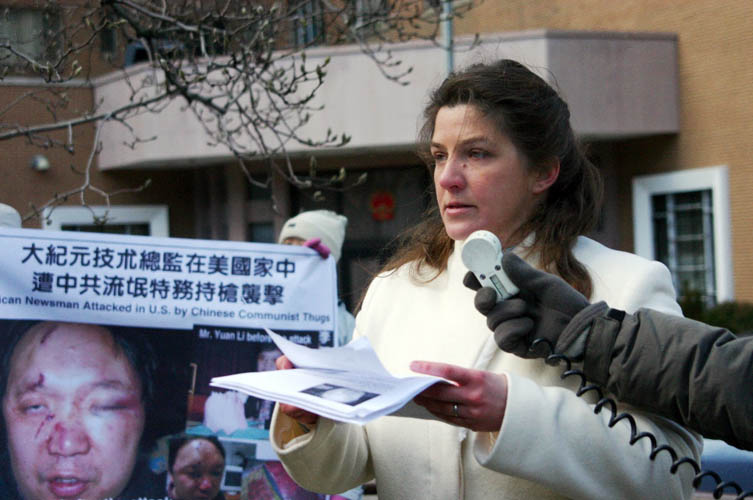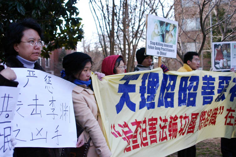 ![]() 华府法轮功学员和大纪元工作人员在中使馆前抗议 |