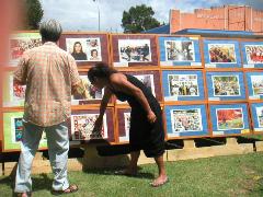 无独有偶,前者刚走,一位广播电台的播音员就来到展台前,他向学员们说:“我很想炼法轮功,怎样才能找到炼功点?”当得知当地并没有炼功点时,马上表示,法轮功在凯塔亚的传播将会从他开始。原来他在两个月前从朋友处听闻了大法,自此萌生了要炼法轮功的念头。今天,在这里与法轮功不期而遇,他感到非常的高兴。最后他向学员表示,希望“摄影展”能在当地多停留些日子,以便他可以快快开始学炼法轮功。法轮功学员告诉他,为了凯塔亚的有缘人,摄影展将在两天后再返此地,同时将会有功法展示。欣喜与激动的他连声说谢谢。并表示,他将会安排电台的画廊供摄影展所用,同时会透过北地省的电台向外发布信息。