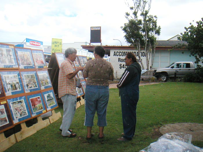 法轮功学员把一幅幅震撼人心的照片展示人前时,着实给凯塔亚(KAITAIA)当地的人们带来了强烈的震撼。一位妇女一边看着介绍大法洪传的照片一边说“太漂亮了,太漂亮了”。当她走到在中国遭迫害致死的法轮功学员的孤儿的照片前,她蹲下了,不断抚摸着照片中孤儿的脸,细细看着照片的介绍,良久,她站了起来,指着照片说,“多可爱的孩子,我可以领养他们吗?”当得知目前领养的条件不成熟时,她表现的十分的落寞。她走到留言簿前,写下了:“你们干得好,感激你们为这些孤儿伸张正义,世界需要更多的人像法轮功学员一样来关注这些他们。”