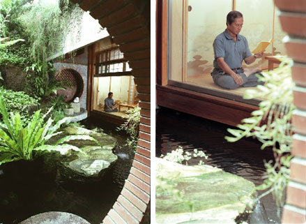 廿五年前,詹为守是个经营水电工程,又喜欢饲养锦鲤的爱好家。在一次偶然的机缘下,詹为守参与修造名画家张大千先生位于外双溪的“摩耶精舍”(现已更名为“张大千先生纪念馆”)。本来詹为守只负责修建鱼池事宜,然而他踏实诚恳与追求完美的态度,深深获得张大千的赞赏与信任。此后连续四年,不论是园林摆设,如植树、搬石、弄水,或是房屋建设改装等大问题,张大千一律不假手他人,托与詹为守处理。几年下来实地的磨练,詹为守也因此在园林景观中别辟蹊径,成为景观业界中的佼佼者,闯出一番天地来。