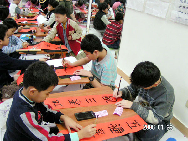 ![]() 小弟子们认真上课 | ![]() 写春联 |
