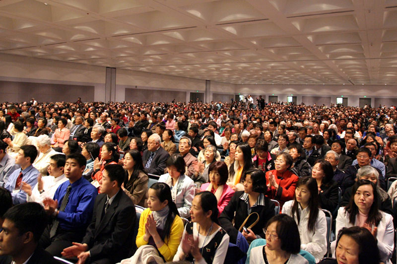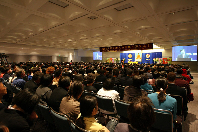 【明慧网2006年2月26日】(明慧记者王英、黄凯莉洛杉矶报导)2006年2月25日,美西法轮大法国际修炼心得交流会在洛杉矶会议中心隆重召开;约2400名来自世界各地的大法弟子参加了交流会。下午2点左右,慈悲伟大的师尊亲临会场,全场长时间掌声雷动。师尊给弟子们讲法约50分钟,又以回答问题的方式讲法约3小时10分钟。