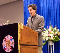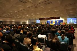 前来参加法会的法轮大法弟子来自北美、欧洲、日本、台湾、及东南亚等地区,上午9点多,法会开始,约十位东西方大法弟子交流了他们在证实法、讲真相、反迫害中的修炼心得体会,其中包括在中国遭非法关押三年,最近刚刚重获自由回美国的李祥春。