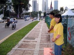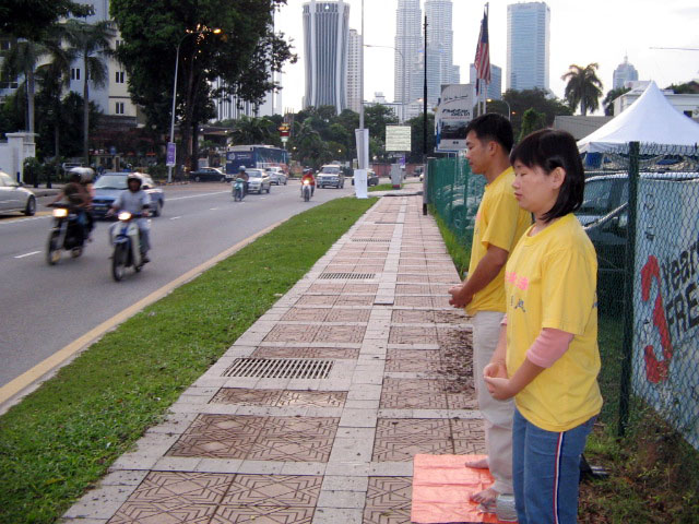 ![]() 法轮功学员在中使馆前以和平的方式抗议中共迫害法轮功 |