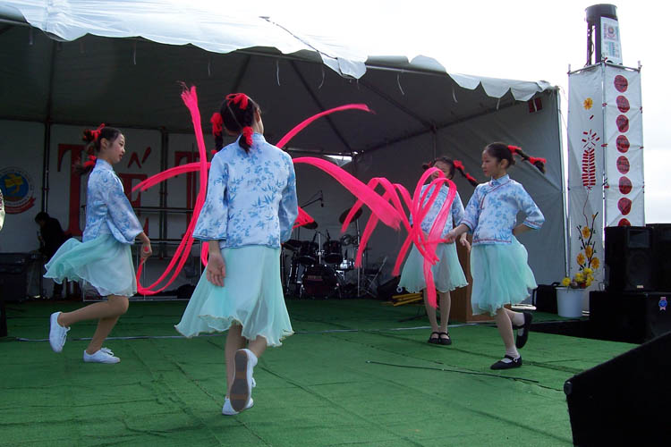 星期六,法轮功学员不断的在展位示范功法,并表演舞蹈,吸引了大批的观众。有的观众有兴趣进一步了解和学炼法轮功。