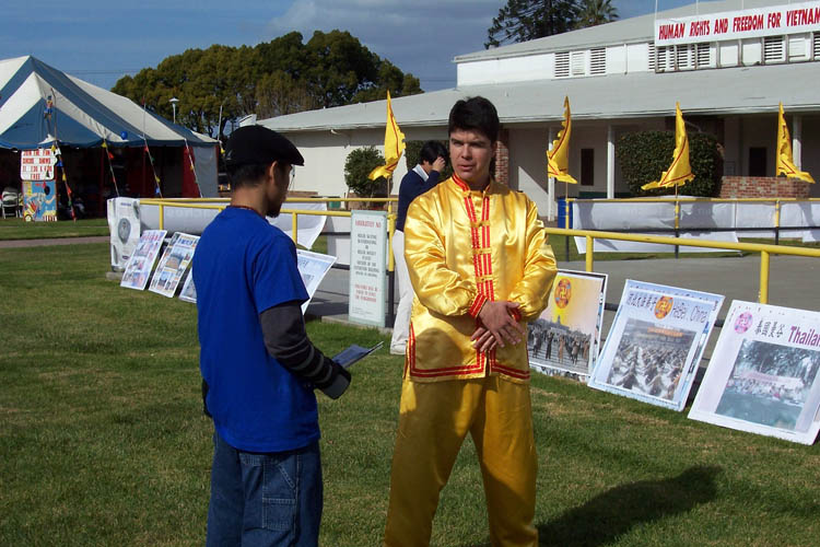(明慧记者王英圣荷西报导)2006年2月4日,旧金山湾区法轮功学员应邀参加在圣荷西市举办的越南嘉年华会。法轮功学员是第四年参加这个盛会,并获得了活动主办者的大力支持。主办者胡光日表示,知道中共迫害法轮功,但法轮功一定胜利。