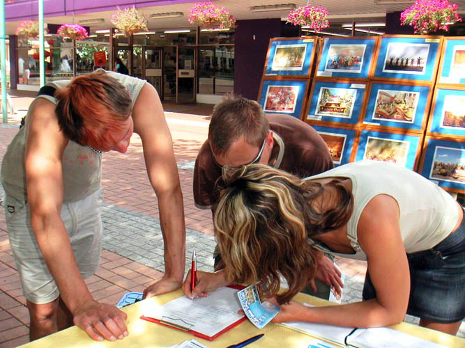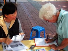 一张张在天安门拍摄下的中共恶警殴打和平抗议的法轮功学员的照片,让当地的人们无不震惊。她们说:“天安门,我知道,那是‘六四 ’枪杀学生的地方。十几年过去了,怎么今天还在杀人吗?”当学员告诉她们法轮功学员在这里和平呼吁而遭到非法逮捕的真相时,她们无不用手把自己那张的合不上的嘴捂上,连说“上帝啊”表示震惊。