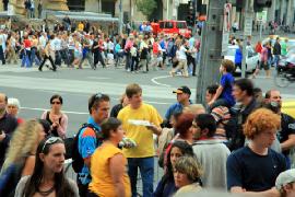 当天傍晚,人们前往市中心观看运动会开幕式和焰火表演,街道上人潮如海,人们纷纷接过传单,观看揭露中共酷刑迫害法轮功学员的真相展板,向学员了解目前的情况等。学员们不间断的接力前往洪法点上讲真相和功法演示,呼吁全球有良知的民众共同谴责制止中共暴行。