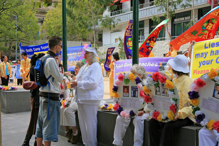 ![]() 向联邦运动会义工讲真相 | ![]() 游客向法轮功学员了解真相 |