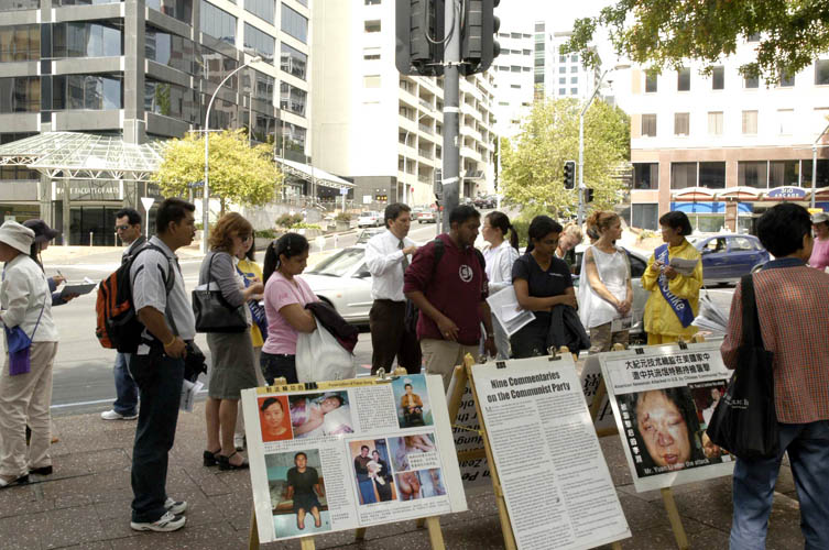 ![]() 法轮功学员向新西兰民众讲述这个当今世界上刚被揭露出来的触目惊心的黑幕 |