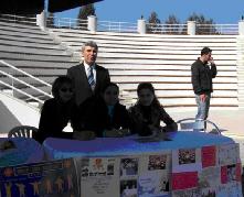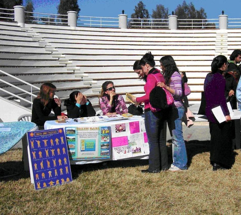 ![]() 时代大学的教师兼教务长威力·考娄路先生(veli koroglu)和学生们 | ![]() 学生们询问有关法轮功的资料 |