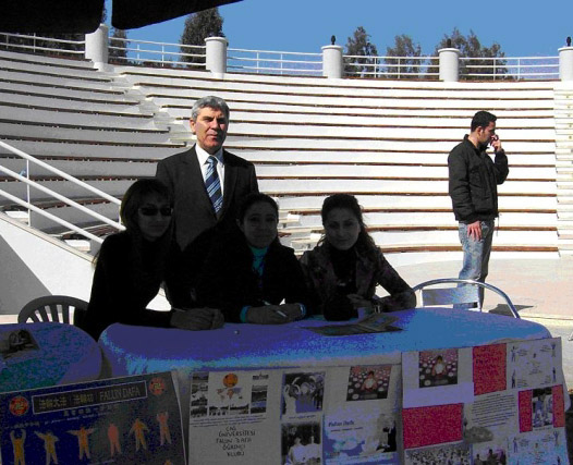因为是私立大学,要在学校教功,我们需要向校长高克翰·贝依宝安先生(GOKHAN BAYBOGAN)申请许可。当他明白了什么是法轮大法的时候,他请我教功,并请我在剧院办一个关于法轮功的大型展示。