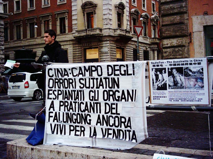在意大利总理府前揭露中共苏家屯集中营罪行(图)