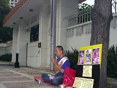 ![]() 在中使馆前悼念被虐杀的法轮功学员 |