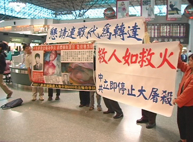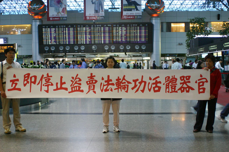 ![]() 法轮功学员于桃园国际中正机场呼吁制止中共迫害法轮功 |