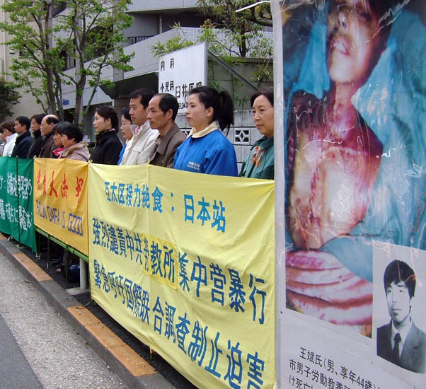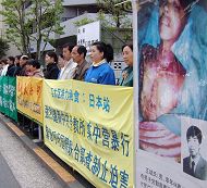 日本学员中使馆前揭露中共惨绝人寰的罪恶(图)