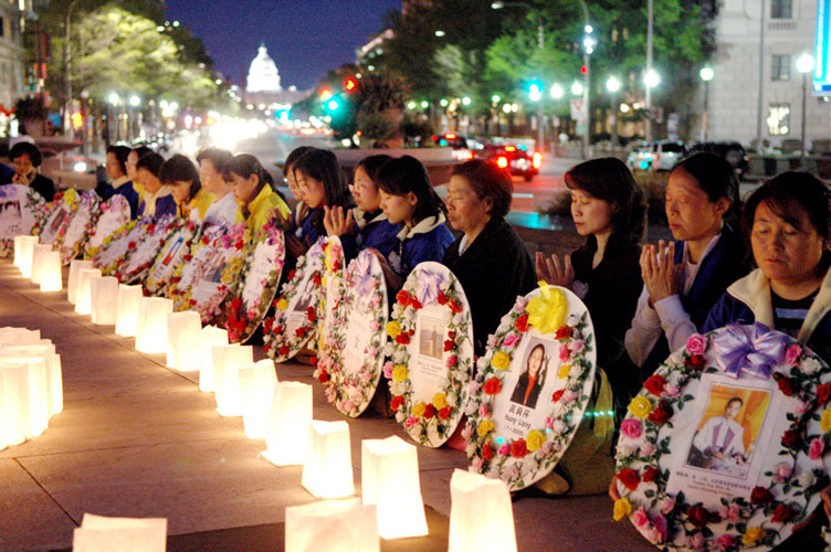 今天,来自全球的大法弟子在这里点燃蜡烛,点燃泪水,点燃深深的哀痛。