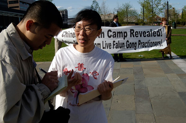 新闻发布会上,来自波士顿的乔依(Joy)女士说,他们早上6点从波士顿出发,沿途举行新闻发布会,抗议中共对法轮功连续7年的迫害。她说:“我父亲在清华大学生物系任教,听到活体摘取器官的消息后,一点也不震惊,他们系经常从犯人身上割取器官做实验,他们也不管犯人是谁。在中国哪里有人的权利和尊严?谁管你是不是因信仰真善忍而被无辜迫害致死的法轮功学员?”乔依表示,是中共多年的洗脑,使她父亲的心中在这方面,已经没有做人的最基本的理念。