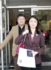 ![]() 新唐人旧金山记者张芬(前)与徐震(后)回应中共外交部发言人秦刚的公开邀请,去调查中共涉嫌设立集中营、盗取法轮功学员器官的事件;进入旧金山中共总领事馆,与签证官见面后从领馆出来。 |