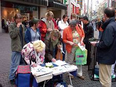 一名路过的中年西人男子,对递给他征签传单的法轮功学员表示:当我一得知中共对不同信仰的法轮功团体进行活体器官摘除盗卖事件,我就上网查看有关的资料,并且在网上已经签名呼吁国际社会调查,我还会给霍华德写信,让他关注这个令人震惊的事件。