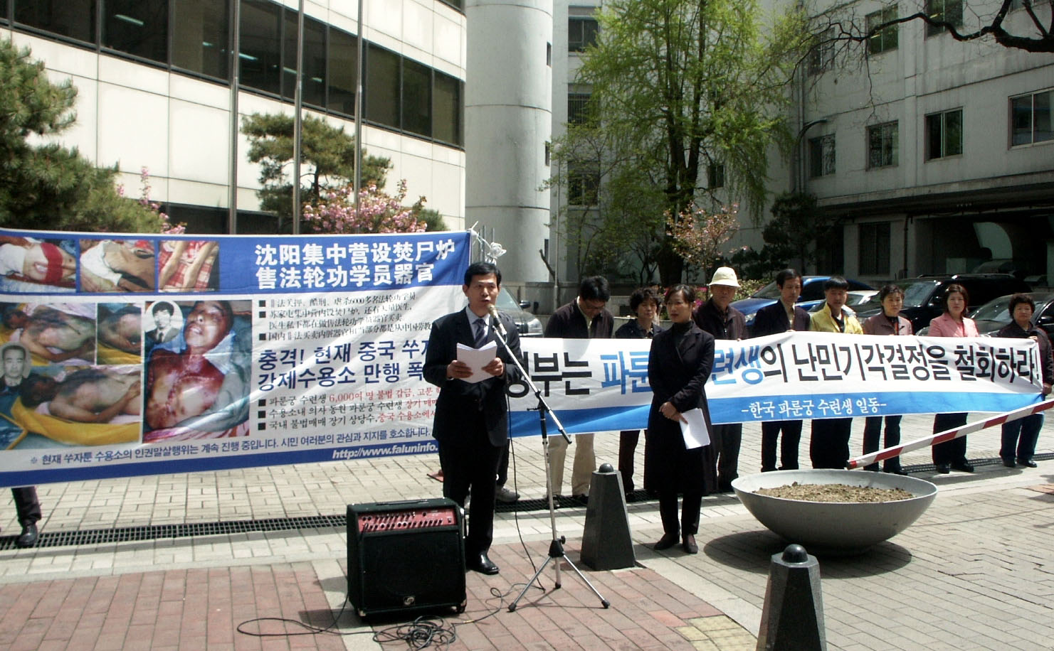2006年4月25日,芝加哥联邦广场上,来往的人们驻足听到了美中法轮大法协会负责人杨森博士的上述发言。数十名芝加哥地区的法轮功学员在这里举行集会,纪念七年前的425和平上访活动,同时,抗议中共持续残酷的迫害,特别是近期揭露出来的中共劳教所里活体摘取法轮功学员器官、买卖牟取暴利的罪行,强烈要求国际社会关注并调查所有的中共劳教所。