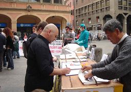 ![]() 人们纷纷签名支持法轮功学员反迫害 |