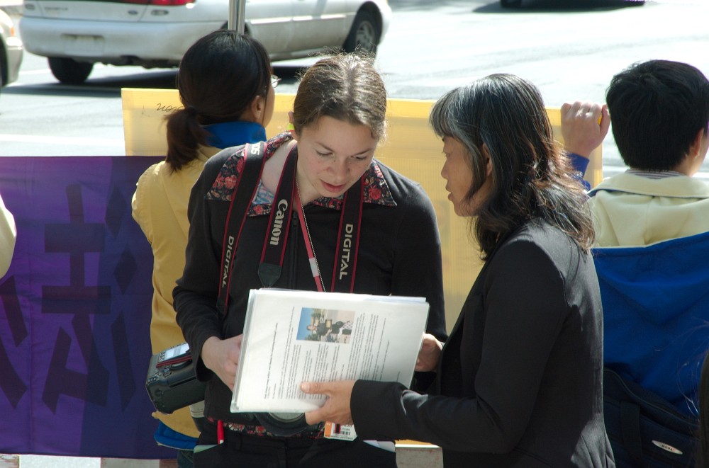 《哈特福德商报》的另一篇报导是从澳洲来耶鲁抗议的戴志珍母女的故事。戴的先生陈承勇因修炼法轮功在中国被迫害致死,她曾因悲痛想将自己封闭起来,但“法轮功教我们先想到他人,我所有的好朋友都因修炼法轮功被关在劳教所,我不能沉默。”