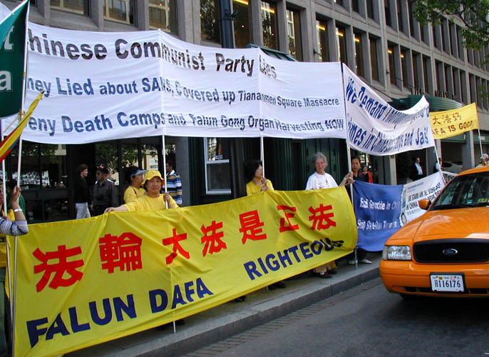 胡锦涛访美所到之处法轮功呼吁停止迫害