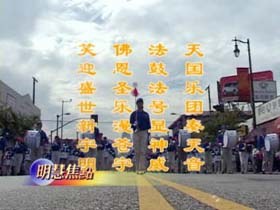 【主持人:古胜博士】各位观众,大家好。欢迎收看明慧焦点。前面我们看到的一组镜头是由法轮功学员组建的一支名叫“天国乐团”的军乐队。从2006年农历新年以来,这支军乐队已经在美国纽约、洛杉矶以及华盛顿等主要大城市进行了演出。一个在中国大陆被残酷迫害了近7年的团体,以大型军乐队的雄壮姿态出现在世人面前,这在西方社会,特别是华人群体中产生了巨大的震动。