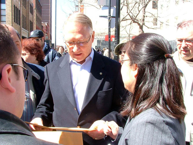 【明慧网2006年4月5日】(明慧记者肖妍报道)2006年4月2日是加拿大蒙特利尔市清洁日,市长谭宝利带领市政负责城市清洁的官员到达唐人街中山公园。法轮功学员向市长递交信件,呼吁全社会关注、谴责中共苏家屯式集中营活取法轮功学员器官的灭绝人性的暴行。