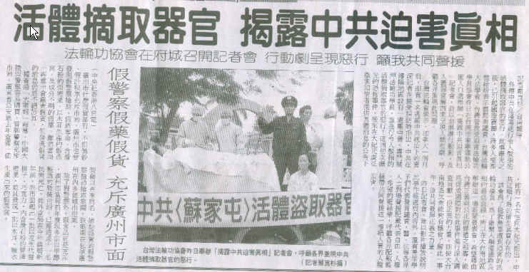 该记者会由台湾法轮大法学会、台湾营救受迫害法轮功学员协会主办,告别中共大联盟、大纪元时报协办,于当天上午10时至12时在东宁公园召开,并演出揭露活体摘售器官的行动剧与展示真相长城。应邀出席的来宾包括立法委员赖清德、立法委员唐碧娥的代表、市政府机要秘书陈建国,两位市议员李文正、萧博仁及数位医师、学者。